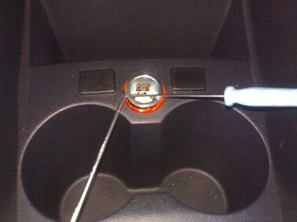 В гнездо прикуривателя стоит вставить палец и поддеть сам прикуриватель отверткой. Если удаться прикуриватель вынуть из гнезда, то его можно менять. Установка также проводится в обратном порядке.