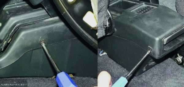 Сдвинув сиденья назад, отворачиваем винты с боков тоннеля.