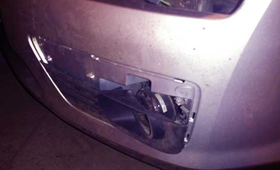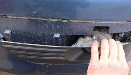 Аккуратно снимаем декоративную пластиковую накладку противотуманной фары. Она держится на защелках, поэтому для ее снятия потребуется приложить небольшие усилия.