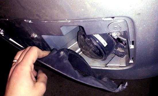Сняв рамку откручиваем противотуманную фару и достаем ее из бампера.