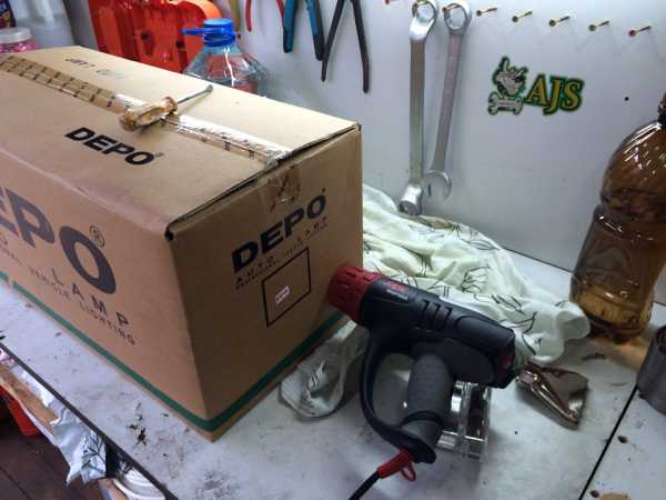 1.) Ищем коробочку чтобы уместить фару — я нашел коробку от Xbox, она как раз с отверстием под сопло фена ;