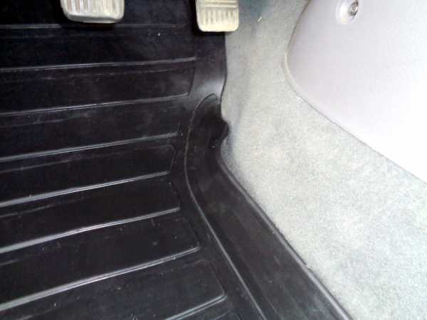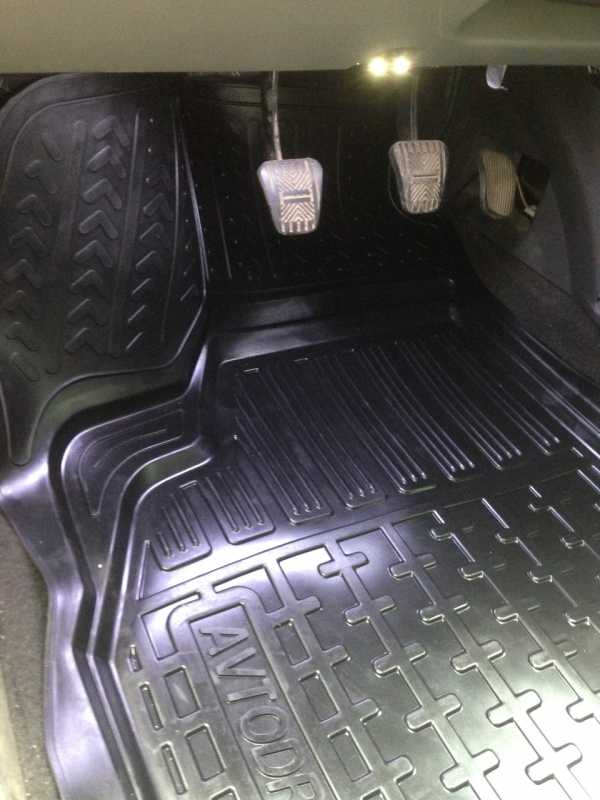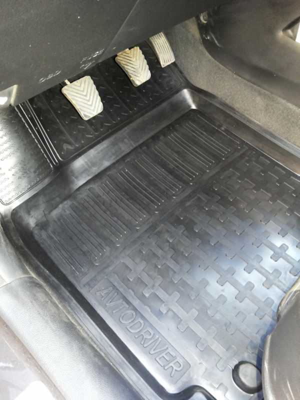 Подпедальное пространство закрывает. Единственное НО — при нажатии на сцепление коврик смещался со ступеньки слева. В принципе, не мешает, но мне не нравилось. В итоге я не придумал ничего лучше, чем сделать разрез, чтобы выделить ступеньку (на фото видно). Всякое говнище не будет попадать в разрез, я думаю.