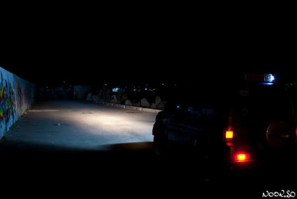 Ею можно пользоваться, например, для дополнительной подсветки бездорожья, когда едешь по полю, степи, пустыне… но в лесу и в городской застройке она не очень хороша, ибо луч очень узкий и светит вдаль. В качестве рабочего света она ваще никакая, ибо слепит, даже несмотря на возможность регулировки яркости, которая заложена в блок питания.