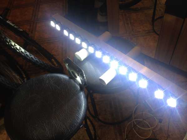 Комбинированная балка: дальний и ближний светЕсли вы не хотите тратить деньги на покупку такого источника дополнительного освещения, то сделайте его самостоятельно. Так вы не только сэкономите средства, но и будете полностью уверены в высоком качестве светодиодной лампы. Тем более что все материалы для фары можно легко найти в специализированном магазине. Для того чтобы создать диодные лампы вам понадобятся следующие вещи: