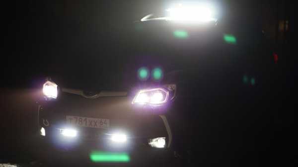 были опасения что триплекс лобового стекла будет светиться изнутри, но они не подтвердились — светится зеленоватым светом только верхняя часть стекла непосредственно у светильников. Рулить не мешает.