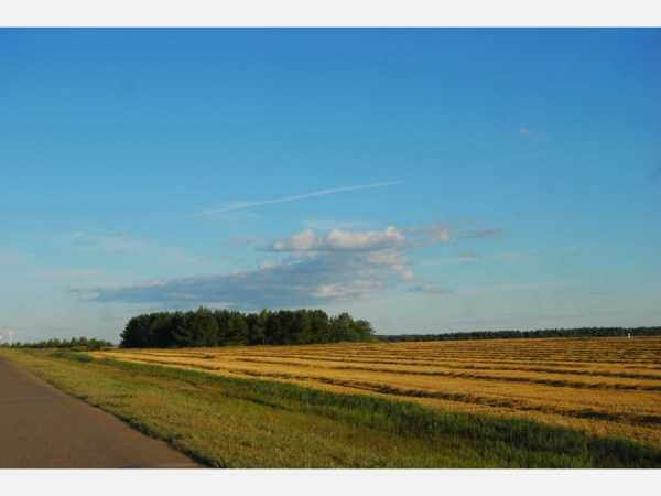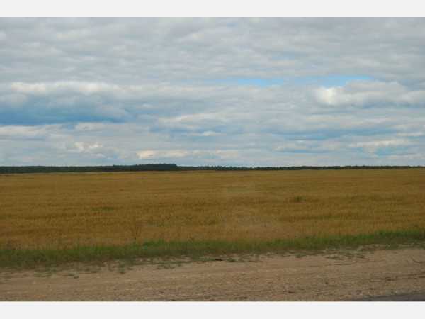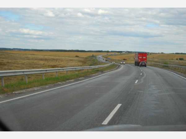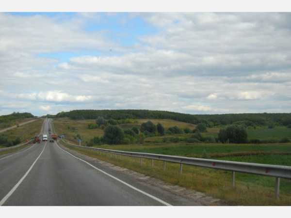 Трасса пролегает через поля.