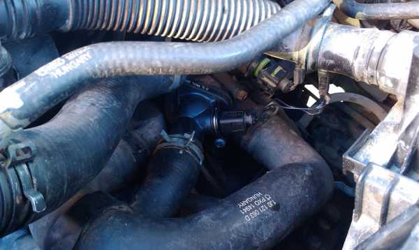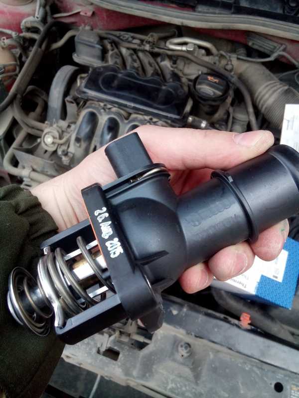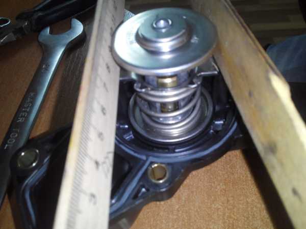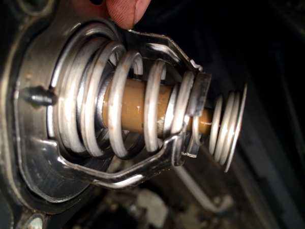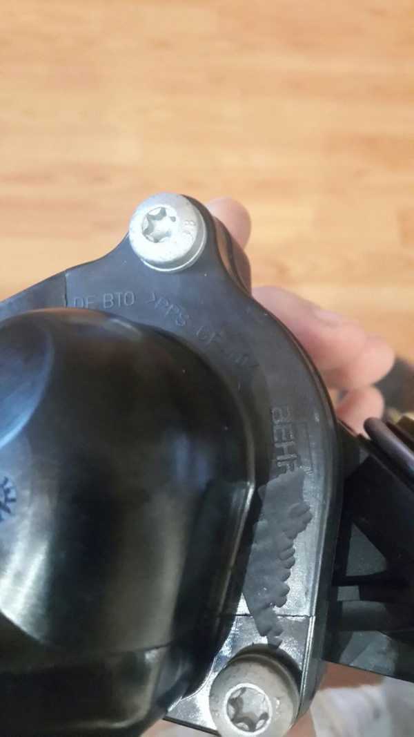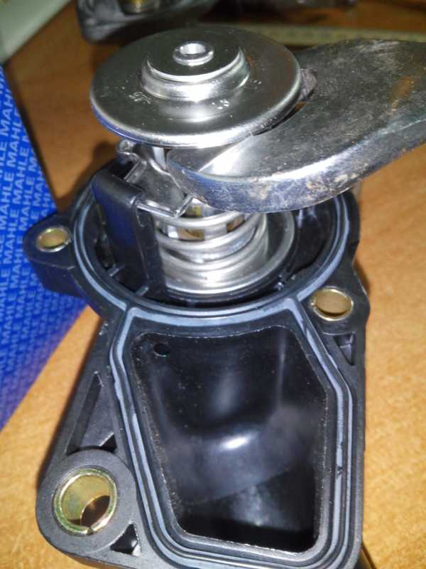 Открутил три болта термостата и снял его! Внешне осмотрел, заметил потертость, видимо там он клинил!