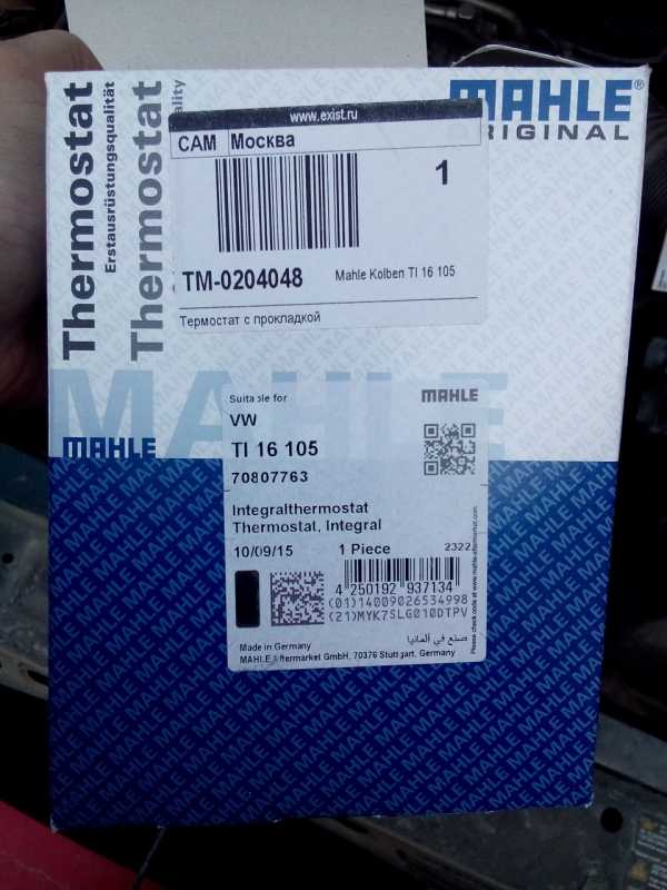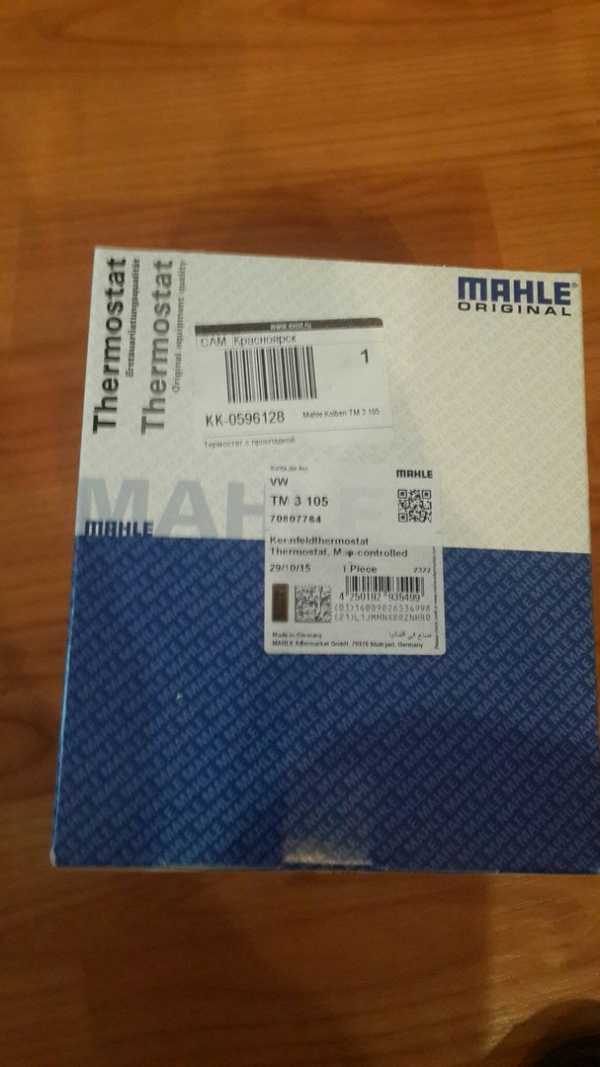 Термостат брал не оригинал, взял фирму Mahle Kolben TM3105. Как оказалось взял не зря, на корпусе термостата видно как срезан логотип с кольцами, это видно на фото самого термостата ниже.