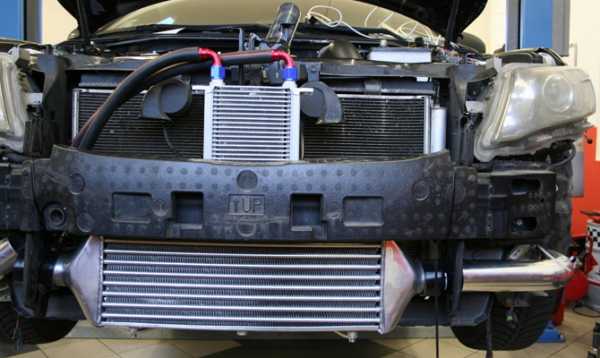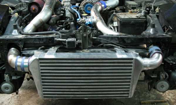 Пришлось устанавливать дополнительное устройство для охлаждения нагнетаемого воздуха — промежуточный охладитель (интеркулер). Этот узел представляет собой охлаждающий радиатор, через который проходит горячий воздух от турбины нагнетателя. Существуют 2 вида кулеров: воздушный («воздух-воздух») и жидкостный («воздух-вода»). Первый охлаждается воздухом и располагается перед радиатором охлаждения двигателя.
