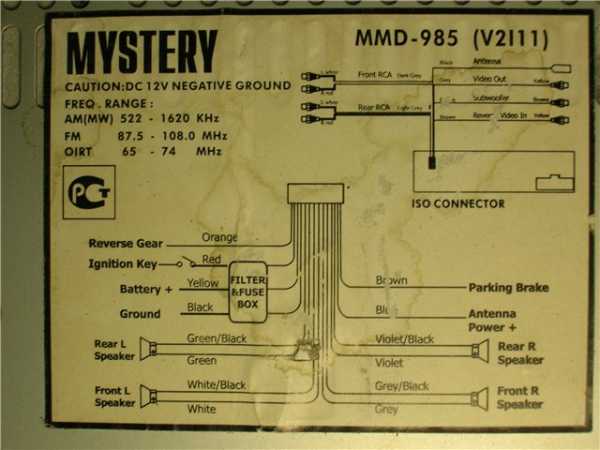 Схема подключения автомагнитолы Mystery