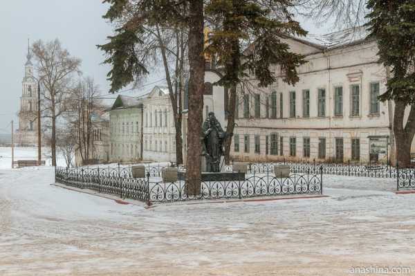 В красивый Спасо-Преображенский собор заходить не стали, ограничившись его наружным осмотром (а может, он был закрыт, музей же, в советские времена в нём был ДК). Удивила колокольня с часами и очень необычным куполом.40-метровая, она является главной вертикалью города, и долгое время оставалась самым высоким зданием.