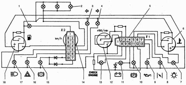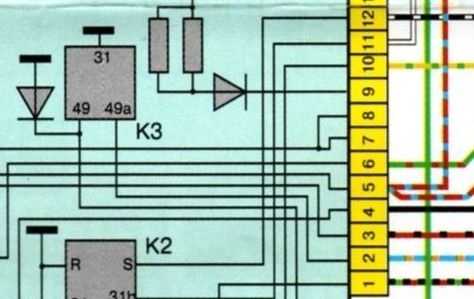 Система аварийной световой сигнализации должна всегда быть исправной, поэтому она снабжается током от провода питания «3» (красный) непосредственно от «плюса» аккумуляторной батареи. Указатели поворота получают энергию только при включенном зажигании через замок зажигания от клеммы 9 через плавкий предохранитель № 6.