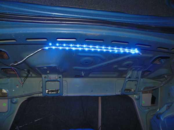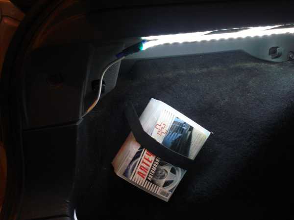 Нужна бала лампа на другой стороне багажника. Я использовал универсальную диодную планку, такую же ставил в качестве подсветки бардачка