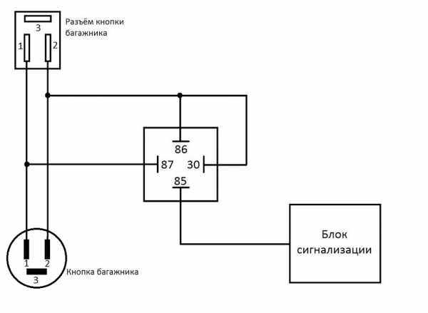 Схемы достаточно простые и ничего в них сложного нет. В самом блоке сигнаолки уже есть реле для отпирание багажника, а значит нам никакого дополнительного реле не понадобится.