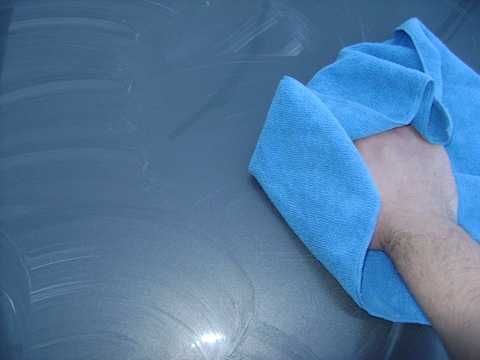 Делается все просто: кусочком тряпочки наносим воск без особого втирания, главное — создать пленку из воска, которая минуты через 3-5 подсыхает и становится белой и матовой. Значит, пора полировать! Берем другую тряпочку и круговыми движениями уже располировываем, но с явным нажатием на кузов.