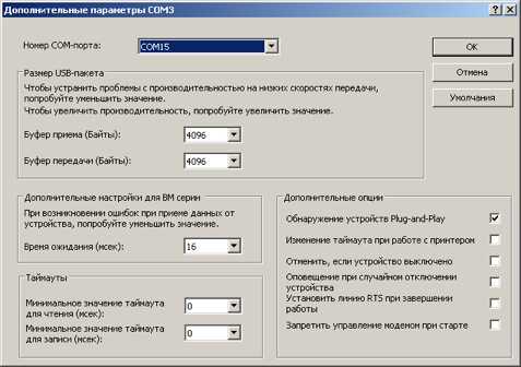 14. К примеру на номер COM2. В случае, если адаптер не будет соединяться с ЭБУ или соединение будет нестабильным, то попробуйте изменить параметр «Время ожидания (мсек)» до 5 мс или вплоть до 1 – 2 мс, а также уменьшить значения «Буфер приема» и «Буфер передачи». Критичные параметры настроек подчеркнуты красными линями:
