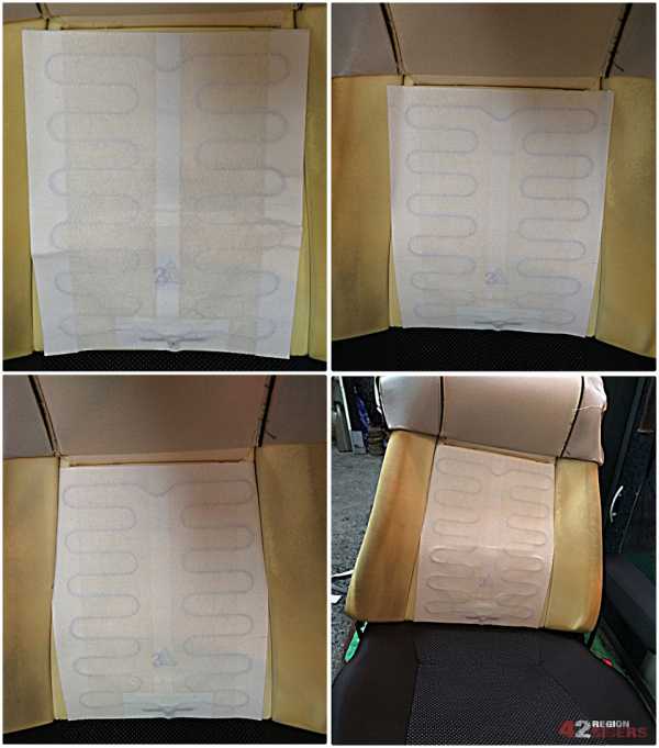 Все дело началось со снятия и разборки сидений до появления поролона, рассказывать как разобрать сидение на отдельные части спинка-сидение не буду надеюсь сами и так знаете. Добравшись до поролона нам понадобится средство для обезжиривания, чтобы лучше приклеился нагревательный элемент, который клеится на двусторонний скотч, у меня таким выступил ацетон, протирал по заранее нужным мне местам, клеил сначала одну, а потом вторую сторону отдельно, а провод нашел свое место в небольшом разрезе на поролоне.