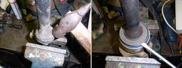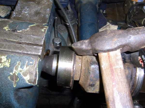Теперь наставив что-то потоньше (в моём случае это было затупленное зубило) на внутреннюю часть подшипника сбивать так же перемещая по кругу