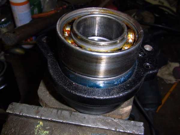 Намазав подшипник синей смазкой осаживаем его в обойму до упора с помощью старого подшипника