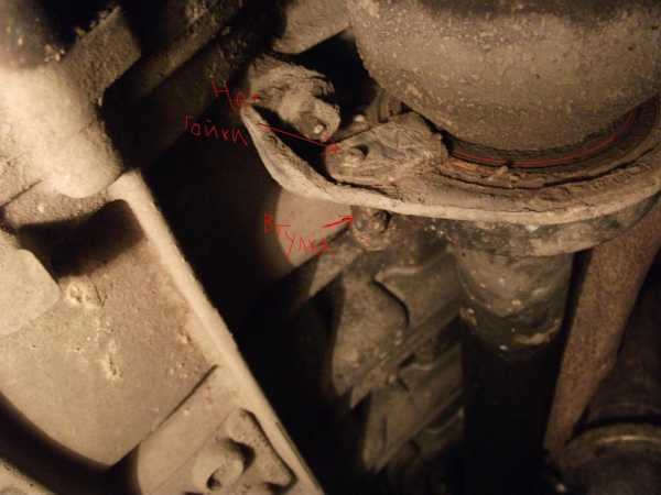 Фото 1 — отремонтированный подвесной на машине в общем плане. Пробег на нем уже более 35.000 км. Надеюсь видно что в «ушах» крепления подвесного просверлены два отверстия диаметром 3,5-4,5 мм. В отверстия вставлено по болту. На болт (на каждый) надета втулка. Длина втулки такова чтобы незначительно выступать (0,3мм) над плоскостью подшипника. Втулку делал из трубки похожей как стояли на старых железных кроватях.