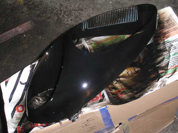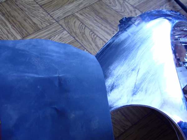 А здесь всё зашкурено и почти заклееноВначале конечно хотел красить по правилам — загрунтовать в три слоя, потом зашкурить 800-кой(наждачкой), а потом уже красить.