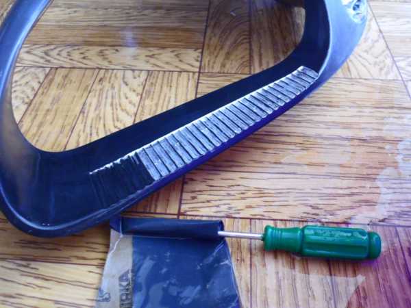 Когда отодрал весь скотч, то к сожалению заметил неровности границы, между краской и хромом. Но эту проблему решил очень быстро…