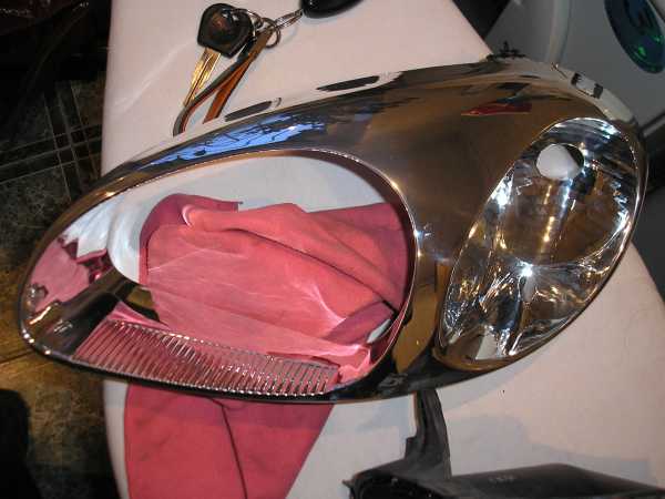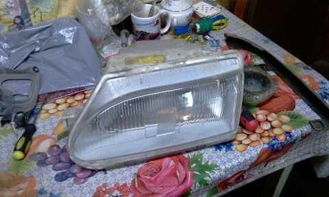…и снимает фару вместе с нижней «ресничкой», забираем фары и идём на рабочее место (Я всё делал дома, красил на балконе).