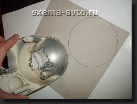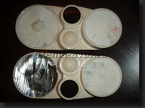 Вот вам Результат неаккуратной протиркиПотом делаем так — вырезаем из картона кружочки по диаметру наших отражателей и втыкаем их во-внутрь, а щели по краям заклеиваем малярным скотчем.