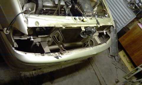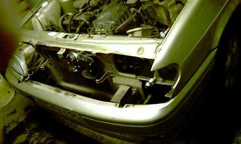 Фара крепится на 4-ёх шпильках затянутые гайками, вместе с фарой вытаскиваеться ресничка и поворотник, что бы выташить ресничку нужно выкрутить саморез снизу за бампером в самом углу, а поворотник крепиться пружинкой которая закреплена в разрезе, в итоге всё у нас спокойно вытаскиваеться с родных мест.