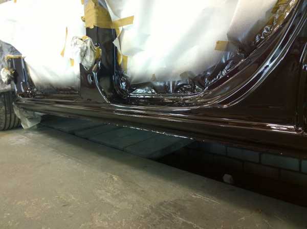 Как видно, только скол на левом пороге похож на оцинкованную поверхность. Остальные почему-то почернели. Почему, не знаю: может батарейка китайская или кислота не та. Брал преобразователь ржавчины, в составе ортофосфорая кислота с цинком. Возможно, там ещё какие-нибудь добавки, которые препятствуют нормальному процессу оцинковки. Не было время разбираться, на дворе осень, ещё и покраска, поэтому как есть, так есть. Марафет не наводил, потому что когда-нибудь в будущем всё равно предстоит нормальный ремонт. Красил оригинальным фордовским карандашом.