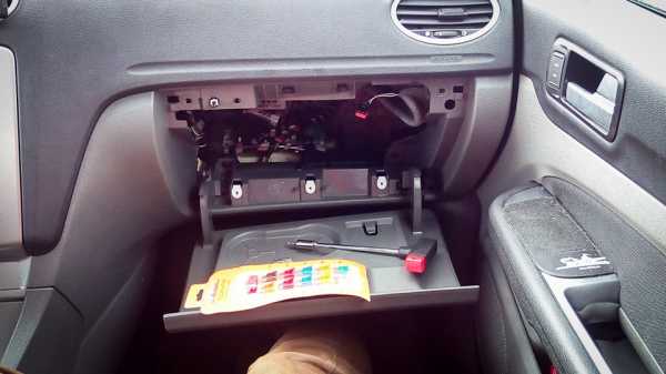 У второго фокуса есть два странных изврата: расположение салонного фильтра и расположение блока салонных предохранителей. Последний находится внутри ниши бардачка: