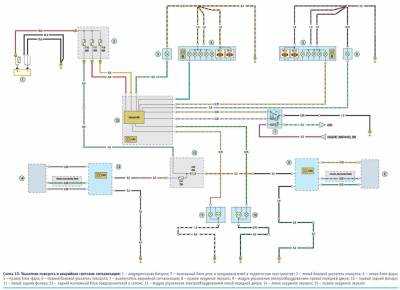 Комбинация приборов, выключатель заднего противотуманного света, разъем линии передачи данных, аудиосистема, ЭБУ временной задержкой и охранной сигнализацией, датчик контрольной лампы незакрытой двери, универсальный проверочный разъем, лампа освещения багажного отделения, лампы направленного света в салоне, плафон освещения салона, узел консоли крыши |