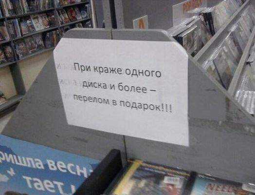 Проживая свою жизнь кружась как белки в колесе, мы зачастую не замечаем как много вокруг всего интересного и забавного. Остановитесь и посмотрите вокруг себя — ведь рядом столько поводов для смеха! Мы собрали для вас самые прикольные объявления, смешные рекламные вывески и надписи на русском языке, встречающиеся в российских, китайских и прочих магазинах и улицах. Эти курьёзные и веселые картинки гарантированно поднимут Вам настроение!