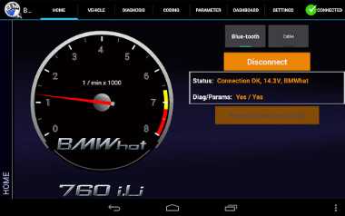 Одно из лучших, если не лучшее Андроид приложение для владельцев автомобилей от немецкого автоконцерна BMW. Эта программа работает практически со всеми видами электронных блоков управления, которые устанавливаются на эти машины.