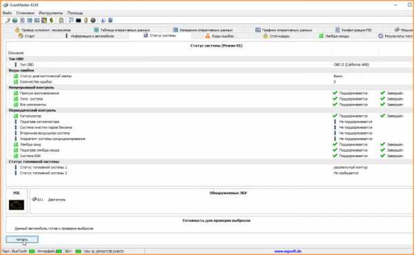 Как только программа покажет соединение с ЭБУ, можно приступать к диагностике систем.