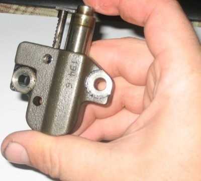 Если натяжитеь цепи так выстреливает цилиндрик, значит натяжитель живее всех всех живых. Чтобы привести его в первоначальное состояние нужно отжать стопорный штырек (самое верхнее маленькое отверстие) и задавить цилиндр в тисках. Затем вставить гвоздик или проволоку в нижнее отверстие, тем самым зафиксируется ограничитель натяжителя цепи (цилиндрика). После чего его можно устанавливать на двигло. Гвоздик вытаскивается после установки цепи. Ну это по-моему и так понятно)))