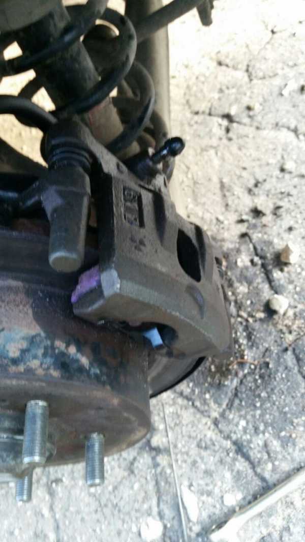 1) Снять суппорт (2 направляющих, трос ручника и шланг. в шланг идеально подходит обычный шланчик, не знаю от чего, втыкаем его как показано, чтобы не вытекала тормозуха.