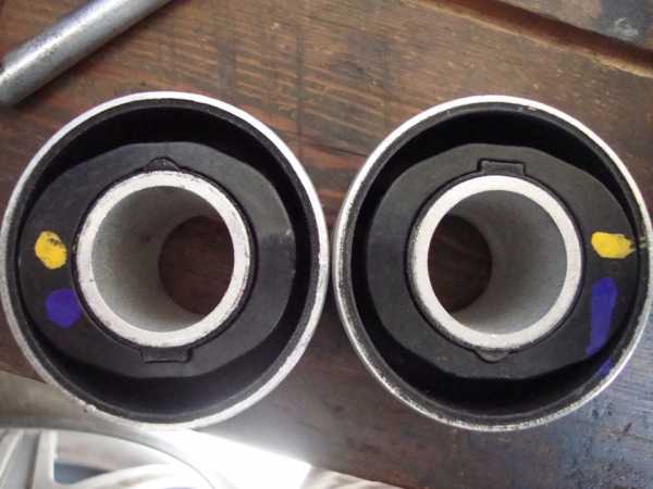 Спереди менять пришлось всего по 2 сайлента в рычаге. Хотя в замене нуждалась только улитка, бублик заменил уже заодно. Вот они во всей красе, Sidem 853642 и Sasic 2250002: