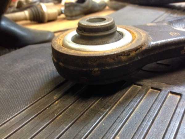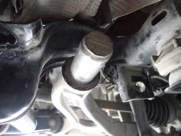 Пока был вынут рычаг, открылся доступ к втулкам стабилизатора. После съема посмотрели на втулку — практически девственно новая. Вычистили все и поставили её обратно. С другой стороны уже не трогали.