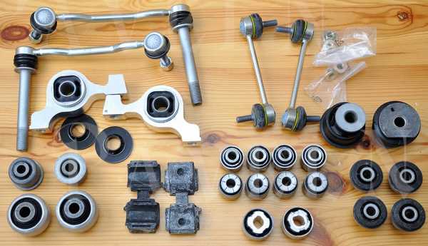 Наборчик не полный, не хватает 2х сайлентов в задний V-образный рычаг и 8 на переднюю стойку. Ну и новых болтов. Но все равно красиво 🙂 По каждой детальке есть фотки, даже с размерами, можно будет сделать отдельную запись.