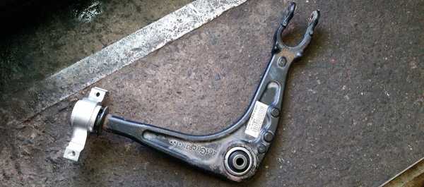 По ходовке доносились звуки хруста и стука справо, диагностика показала на рычаге 7L0407154B правом, сайлентблок рычага переднего нижнего задний. Шаровую проверили — она исправна, если бы шаровая тоже износилась, то пришлось бы менять рычаг нижний в сборе !