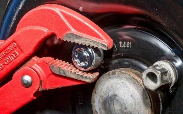 Ещё одним популярным способом является использование газового ключа. Способ подходит только для выпуклых секреток. Для начала можно попытаться воспользоваться ключом без изменения конструкции болта.