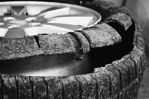 Особую опасность представляют трещины внутри шины – их невозможно заметить. Это может привести к отделению проволочного сердечника, предохраняющего шину от растягивания и соскакивания с обода колеса, а также к отслаиванию протектора.
