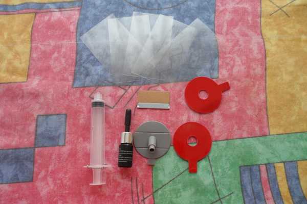Комплект для ремонта сколов стекла содержит не полный набор приспособлений, которые потребуются в процессе проведения работы. Перед удалением повреждения нужно приготовить: