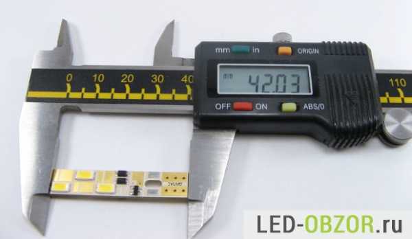 Размеры таковы, что лампочка свободно проходит в штатное отверстие фары. С двух сторон расположены по 3 светодиода, стабилизаторы и выпрямительные диоды. Контакты позолочены. По качеству пайки видно, что паял не человек – сборка машинная.