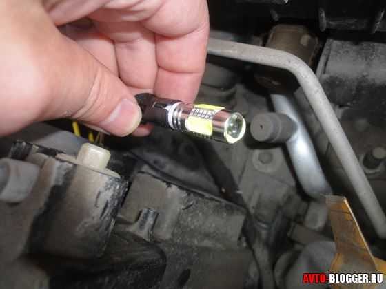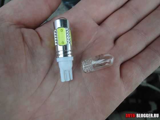 4) Теперь нам нужно вытащить старую (обычную) лампу и заменить светодиодной. Для сравнения вот старая лампа и светодиодная, как видите вторая намного больше. Нужно отметить новая лампа, без проблем устанавливается в штатное место.