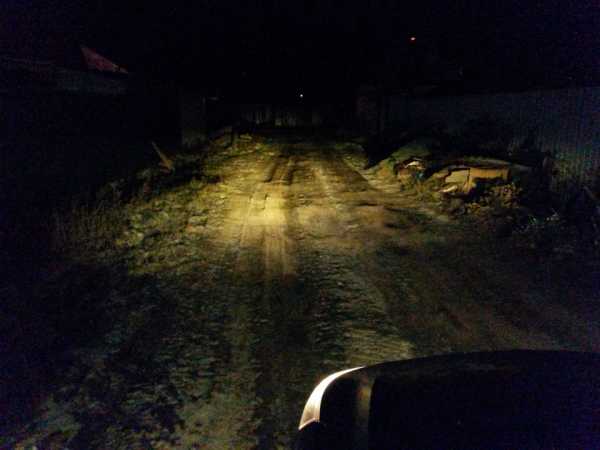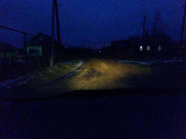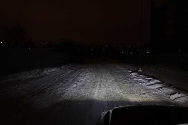 После поездки вечером складывалось ощущение, что вроде свет есть, но что то тут не так… В начале списывал это на цветовую температуру ламп, которая была ближе к 6000K то есть белый свет с голубым оттенком. Однако после того, как я приехал на свою любимую тёмную дорогу со столбами, всё стало ясно — диодные лампы по дальности светят гораздо ближе! причём метров так на 5 как минимум!