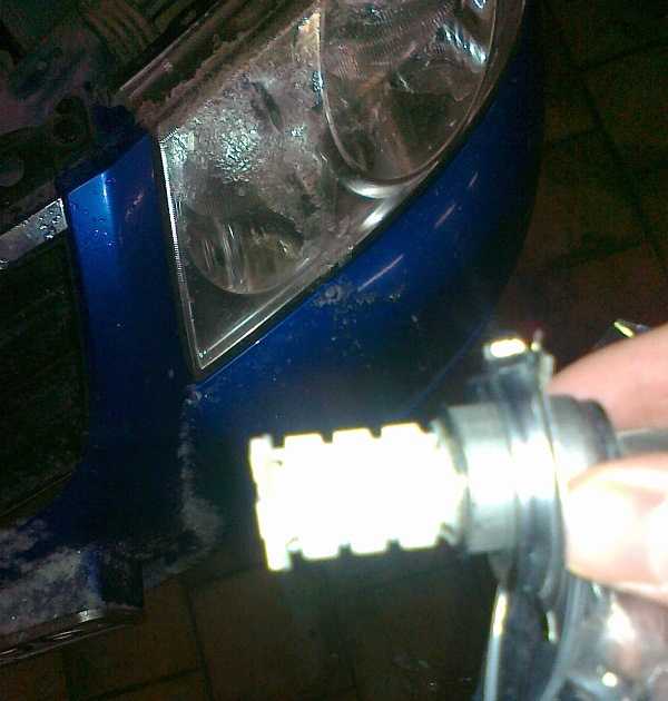 И первое, на что сразу наткнулся — толщина самой «палки», на которую крепятся диоды, у всех ламп разная! То есть, некоторые модели вообще не пролезут в фару, в отверстие для лампы. Значит надо выбирать те модели, у которых диаметр соответствует диаметру колбы галогенной лампы.