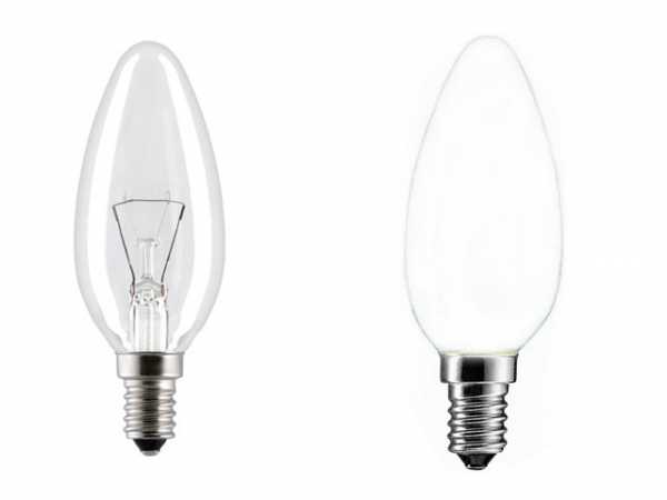 Слева стоит матовая лампа, справа — с прозрачной колбой