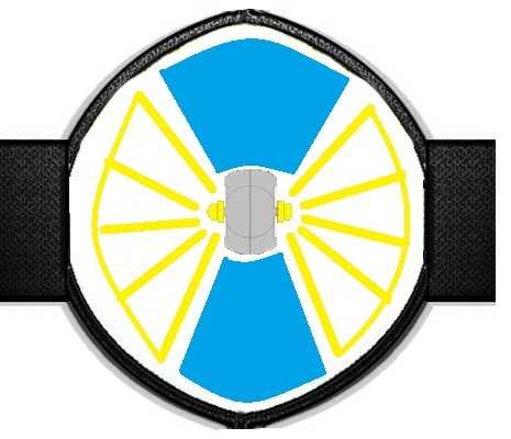 Художник из меня кривой, но представление можно понять — фара, вид спереди, по центру планка с расположенными на ней диодами, которые светят в бока. Сверху и снизу, помеченное синим, у нас малоосвещённые зоны линзы. В случае, если будет стоять лампа с нитью, то свет от неё будет распространяться во все стороны внутри линзы.